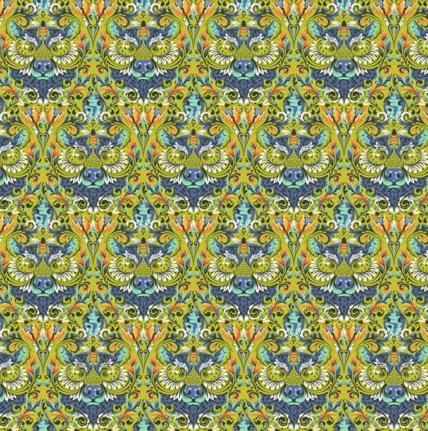 BEAR WITH ME - Glow from TINY BEASTS COLLECTION by Tula Pink, 100% Cotton, By The Half Yard, Toad Hollow Fabrics