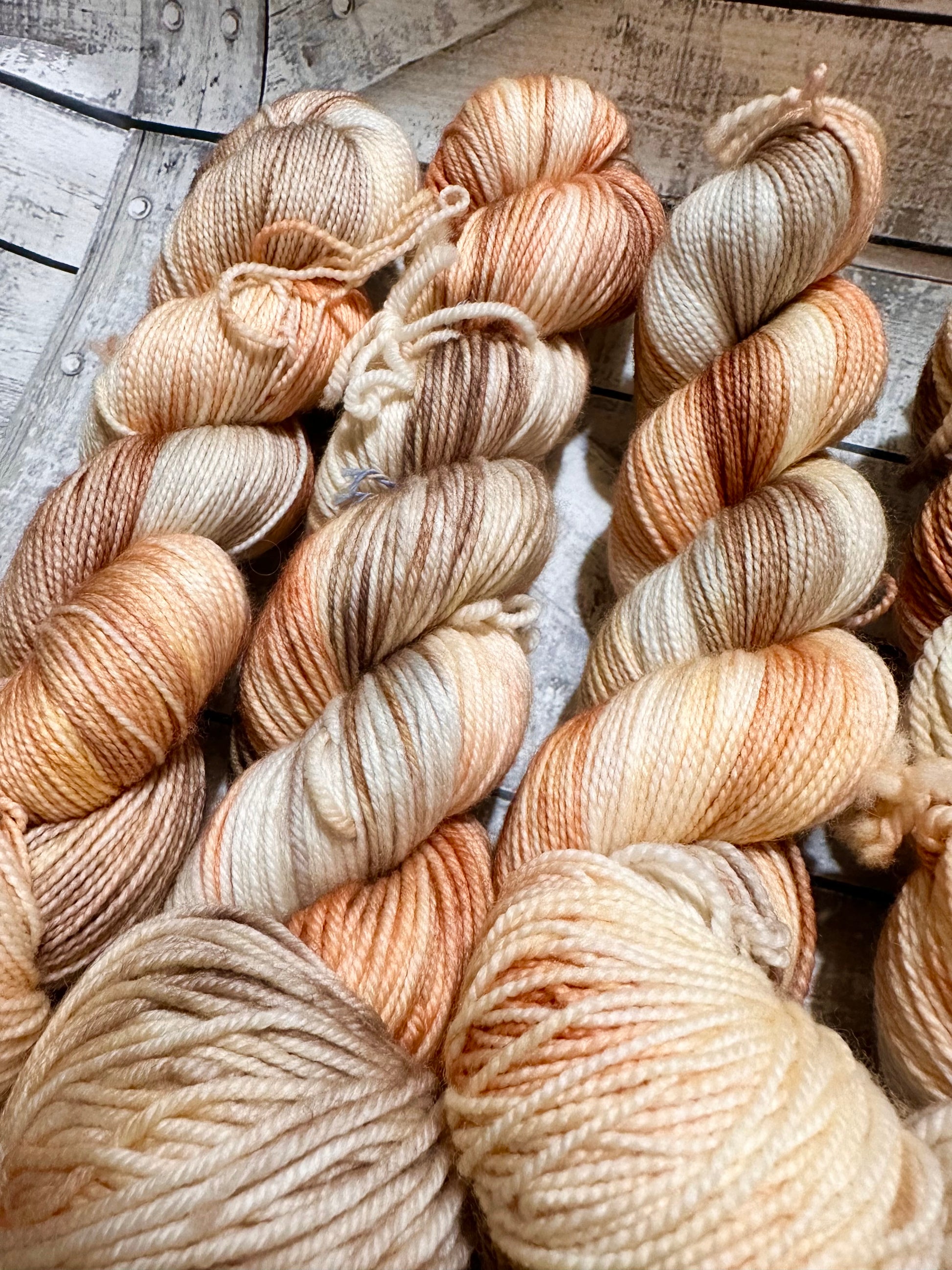 Our yarns are hand dyed or hand painted using professional acid dyes. We wash each skein carefully after dying but slight bleeding may occur during first wash. Skeins may vary in color slightly so if using more than one skein of yarn in a project, please alternate skeins every few rows.